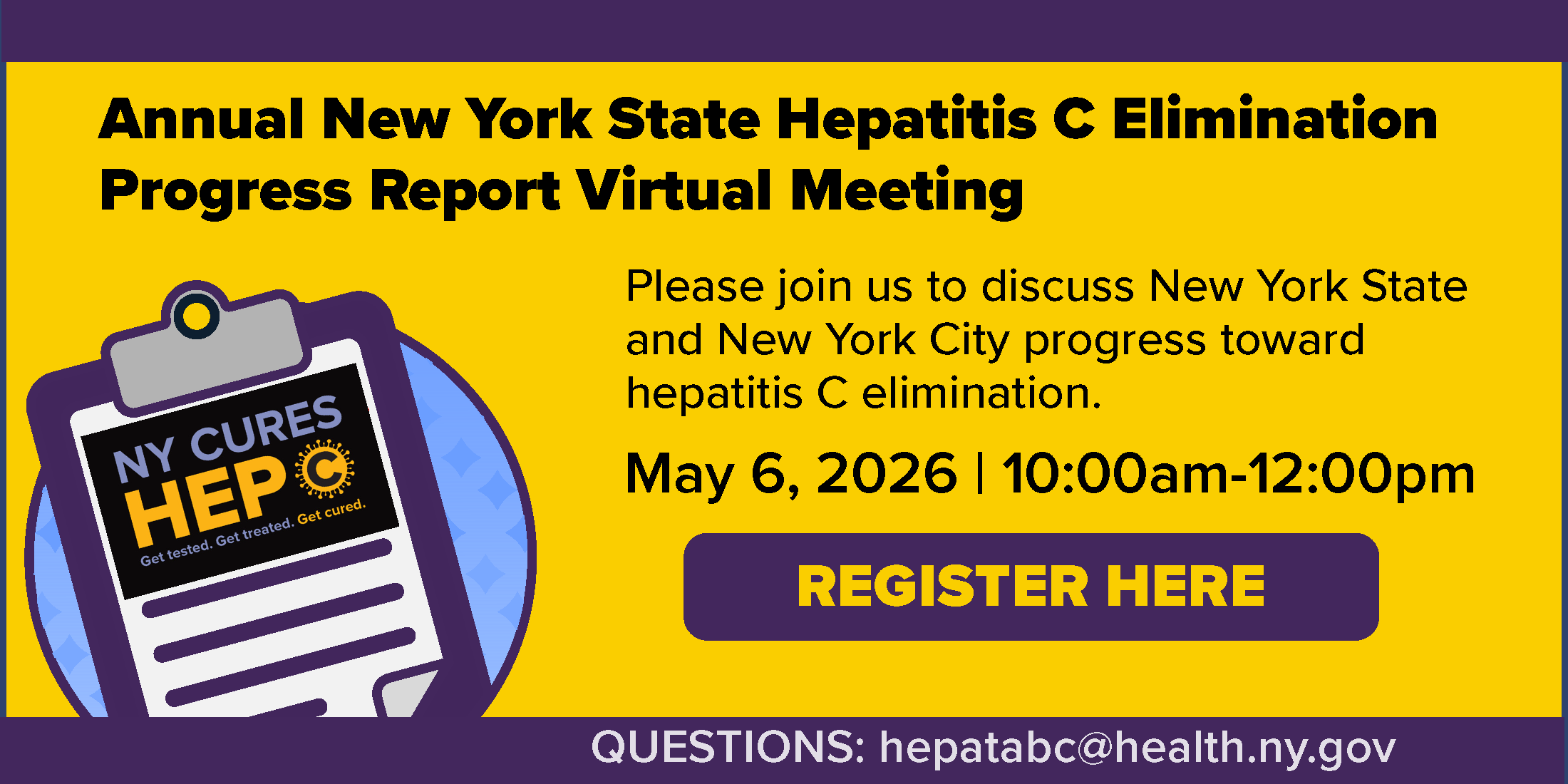 Learn about New York’s progress towards elimination during the Annual NYS Hepatitis C Elimination Progress Report Meeting on May 6th.